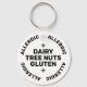 This customisable food allergy keychain features the slogan 'Allergic to: Dairy, Tree Nuts, Gluten' in a bold black font. You can edit the text to change the allergens as needed. The background is white, which you can change to any colour you want. On the back, you can add your name and your emergency contact number. A useful item for anyone with food sensitivities. ••• For more medical gear, visit my store Zazzle.com/Elder_Vitality ••• For custom orders, message me on Zazzle