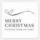 Simple white black modern Merry Christmas heart ornament custom family name square sticker