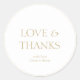 This lovely simple white wedding thank you sticker features a Love & Thanks text in a contemporary golden taupe and couple names.