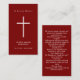 This simple memorial prayer card template with elegant white script on a red background can be given as a keepsake at a Celebration of Life or funeral service or sent as a special tribute to those who were unable to attend. Design features a simple gold cross with complimentary gold script typography on a classic navy blue background. Personalise this card with the name of your loved one, dates and your choice of prayer or poem on the back. Easy to customise. Our heartfelt condolences during this difficult time.