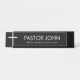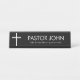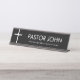 Simple White Cross with Name and Quote on Black Desk Name Plate