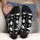 Step into spooky season with these Halloween design socks featuring a playful pattern of simple white ghost silhouettes in varying sizes set against a bold black background. A fun and festive design that’s perfect for adding a touch of Halloween spirit to your outfit.