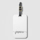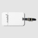 Girly Feminine Minimalist Simple Clean White Monogram Name Signature Script Custom Personalised Luggage Bag Tag. This design featuring your first name in a pretty hand lettered style swash tail calligraphy font signature (or typography) in black on white colour background. Easy to customise it. Stylish feminine gift for wedding, bridal shower, graduation, sweet 16 birthday and for anyone who loves glamourous style.