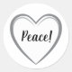 Simple White Heart Shape with Peace Text Classic Round Sticker