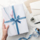 Modern and simple white marble stone pattern with pink and blue. Customisable wrapping paper template
