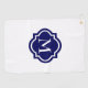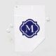 Simple and elegant white monogram on a blue quatrefoil frame. The background is white