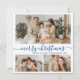 Simple White Navy 3 Photo Collage Christmas Holiday Card