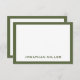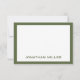 Double-sided timeless custom flat note card design features olive green and white monogram design with name in the lower thirds, framed in olive. Classic block typography that can be personalised with your name or custom text. Space for your handwritten note is included on the front and back. This card is available in both print and digital formats, allowing you to choose the option that suits your needs.