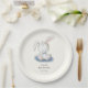 Simple White Rabbit Blue Tie Baby Shower Paper Plate