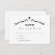 Simple white with black text RSVP card with an elegant ornamental design element.