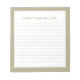 A professional lined notepad with a minimalist design in sage green and white. Custom monogram initial and name on a simple white background, framed by a sage green border. Personalise using the fields provided or use the 'message' button to contact the designer for help.
