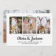 Announce the joyful news of your engagement and upcoming wedding with unique custom photo save the date invitations. The 4 pictures and all wording on this template are simple to personalise, including white text overlay which can be changed to "Save Our Date." (IMAGE PLACEMENT TIP: An easy way to centre a photo exactly how you want is to crop it before uploading to the Zazzle website.) The black and white design features four pictures of the engaged couple, stylish handwritten script calligraphy, and trendy modern minimalist typography. This unique announcement note card is an elegant way to inform friends and family of your upcoming special day celebration. Congratulations to the bride and groom!