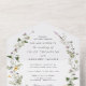 All in One Wedding invitation featuring watercolor wreath of wildflowers and greenery. Each card includes a perforated RSVP card that’s addressed and ready for your guests to send back in the mail. Customise with your information or click "click to customise further" to change the font style, size, colour or background colour.