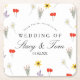 Simple Wildflowers Hand Drawn Wedding Thank You Square Paper Coaster