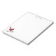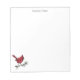This simple and elegant notepad features a hand-drawn illustration of a red cardinal bird perched on a branch in black ink. Personalise with your name.