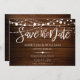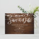 Simple Wood and String Lights Rustic Wedding Save The Date
