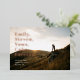 Simple and bold raised foil text on white features a list of the wedding basics: you, your beloved, wedding vows, cake and your future forever, making this save the date card a modern way to send your big news to family and friends. Easy to customise text accommodates the wedding date and location with space to add more text on the back like wedding website url and even more engagement photos.
