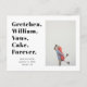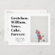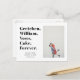 Simple and bold black text on white features a list of the wedding basics: you, your fiance, wedding vows, cake and your future forever, making this save the date postcard a modern way to send your big news to family and friends. Easy to customise text accommodates the wedding date and location with text on the back for your wedding website url and any extra information you want to share with guests.