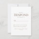 White Wedding RSVP Response Card. Dinner & Dancing. Modern font. Combo font. Gold Text. Yellow Floral.
