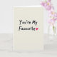 This greeting card keeps things simple and sweet, with the words “You’re My Favourite” placed right in the center. The lettering looks like casual pen writing in black, with smooth, easy-to-read lines that feel like a note you’d leave for someone you love. The background is a warm off-white, so the message stands out without anything else competing for attention. A small pink heart sits at the end of the second line, like a little finishing touch that quietly says “I mean it” ❤️. There are no characters or extra objects here, just a clear message and a gentle pop of color. It feels meaningful because it’s direct and personal, the kind of thing you might say out loud but don’t always remember to. This is a lovely choice for a partner, close friend, or anyone who makes your days better 🥰. Hope it helps you share your Valentine’s Day sentiments.