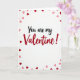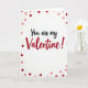 This greeting card features the message “You are my Valentine!” centered on a white background. “You are my” is written in smooth black cursive-style lettering, and “Valentine!” appears right after it in larger red letters that stand out. Small hearts in red and light pink are scattered around the words, mostly near the edges, like a loose border. The hearts vary a bit in size and shade, which makes the front feel lively without being too busy. Overall, it feels sweet and direct, like you’re saying what you mean without overthinking it 🥰. It’s meaningful to give because it works for a partner, a crush, or even a close friend you care about. Share it to help pass along Valentine’s Day feelings with a little extra love ❤️.