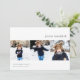 Send Hanukkah greetings to friends and family with our elegant photo cards. Designed to accommodate three of your favourite square photos arranged side by side in a collage format, card features your custom Hanukkah greeting (shown with "Joyous Hanukkah") and family name(s). Cards reverse to a subtle watercolor stripe pattern in pastel blue.