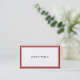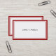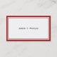 A simple business card with a Red and White graphic frame, with a white background and black print. Customised details that you'll want to include are on the reverse side, which also has the Red and White frame, a white background and black print.