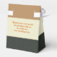 Favour box to thank guests at a gay wedding with bear grooms. The hues are all taken from the Bear Pride flag, with the simplified version forming the backdrop.