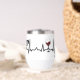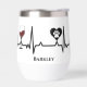 Simplistic Black Paws and Red Wine Heartbeat Wine Tumbler. Toast to the heartwarming bond with our Wine Tumbler! A dog paw and wine glass are intertwined in a heartbeat graph, capturing the pulse of your love for dogs and good wine. Easy to edit with your dog's name or your name. Elevate your style and spread the love on the go.🐾❤️🍷
