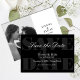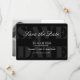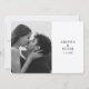 This simplistic modern black-and-white photo save-the-date announcement captures the essence of simplicity with a touch of sophistication. This design features Save The Date in a muted-coloured bold block font with a combination of serif and script font on a black background on the front and a photo with a white background on the reverse.