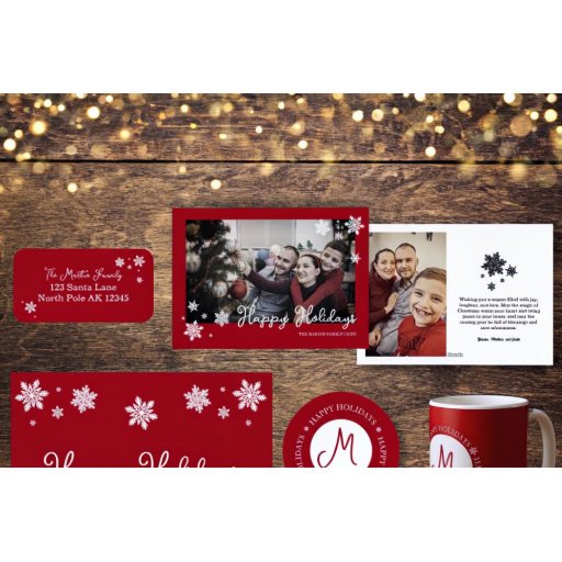 Simplistic Snowflakes Happy Holidays Red Monogram Coffee Mug