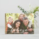 Send out your 2014 holiday greetings for Christmas to your friends and family using this beautifully, simple contemporary holiday photo card with the word "Believe" written in a white classic handwriting script font overlay. Design by ELKE CLARKE© Other colours and sales available at our shop at www.zazzle.com/monogramgallery. Replace sample photo with your own. Red and white striped background on back of card.