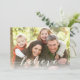 Send out your Christmas greetings to your friends and family using this beautifully, simple holiday photo card with the word "Believe" written in a white and olive green script font overlay. Design by ELKE CLARKE© FOR MONOGRAM GALLERY. Replace sample photo with your own. Olive green and white striped background on back of card. Other colours available in store.