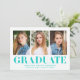 Announce your graduate's achievement with these minimalist graduation announcements, featuring three of their favourite photos and bold turquoise "Graduate" lettering. This modern design offers a sleek and stylish way to celebrate their big day. Personalise the announcement with the graduate's name, school name, and graduation year for a unique touch. Perfect for high school and college graduates, these multi-photo announcements are a beautiful and contemporary way to share their success with friends and family.