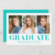 Simply Bold Turquoise 3 Photo Graduation Announcement
