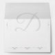 Design features an elegant silver-coloured border around outside of envelope. Back flap features a wedding bible verse and may be replaced or left as is. Envelope inside displays monogram of couples' married name in a soft silver tone.