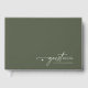 This sophisticated wedding guest book design, shown here in dark moss green, has a template to easily add your own message, names and wedding date. As part of a chic wedding suite with a warm nature-inspired colour palette and minimalist design, it has a timeless and sophisticated look that will impress your guests and help make your special day unforgettable. Search ID1046 to see all the products in this wedding suite.