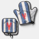 "SIMPLY CLAWESOME" Red Lobster on Denim Stripes Oven Mitt & Pot Holder Set