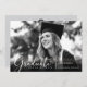 This is a simply elegant graduation announcement card that features a calligraphy style typography and full-photo landscape image. You can personalise the graduating class, graduate name, and school name. The bottom of this card features a black gradient so that the text is legible over any photo. Congrats!