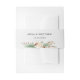 This lovely winter botanical invitation belly band features bouquets of ivory roses and flowers, red holly berries, fir and golden snowflakes on a pale pearl grey background. Includes editable text fields.
