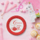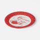 Add these pretty paper plates to your Christmas tea party supply list. An elegant teapot covered with red lace with a silver bow over graceful font lettering are in the centre of the plate with a white backdrop. The outer edge of the plate forms a red lace border around the centre. Simply elegant!