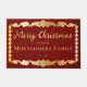 Elegant snowflakes faux gold scroll-type borders Christmas holiday design with your family name and greeting ["Merry Christmas"] with date family was established.