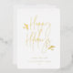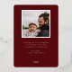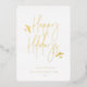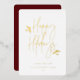 Happy Holidays, simply festive script with foliage accents, real gold foil typography. Single square frame photo with template space for your personal holiday message on back with dark red background.