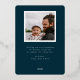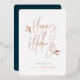 Happy Holidays, simply festive script with foliage accents, real gold foil typography. Single square frame photo with template space for your personal holiday message on back with dark blue background.