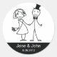 SImply Love Wedding Invitation Label. Simple stick figures of a bride and groom adorn this invite, and the black and white colour scheme make this a minimalist style for the modern couple. Fun and whimsical.