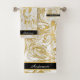 Simply Marble Monogram Gold White Marble black Bath Towel Set