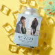 This modern save the date can cooler features a two vertical photos. The wedding date appears in large black print on a light blue background. This unique save the date is perfect for engagement parties.