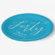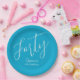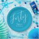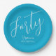 Simply Modern Script Aqua Blue 40th Birthday Party Paper Plate