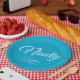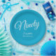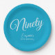 Simply Modern Script Aqua Blue 90th Birthday Party Paper Plate