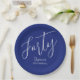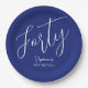 Simply Modern Script Navy Blue 40th Birthday Party Paper Plate